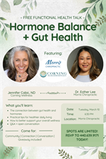 Join Dr. Esther Lee of Morris Chiropractic and Jennifer Cabic, ND of Corning Wellness for a night of community, connection, and conversation!
